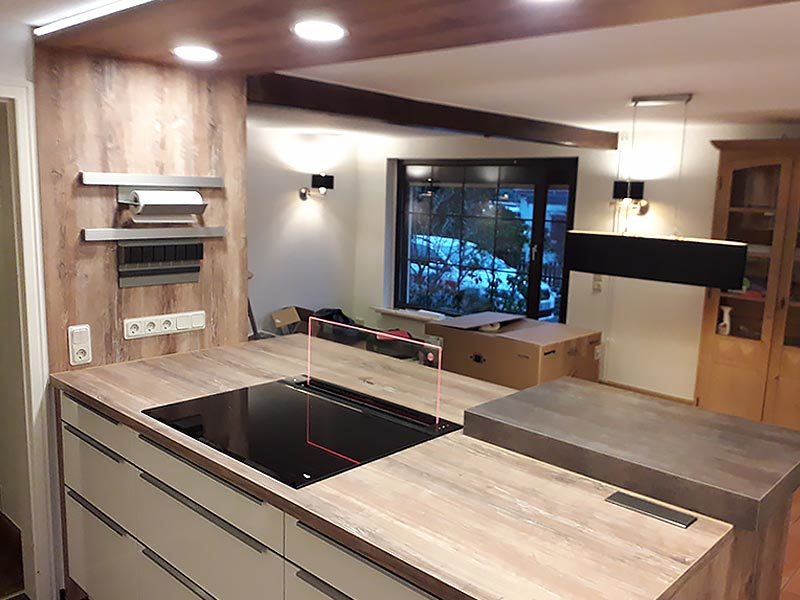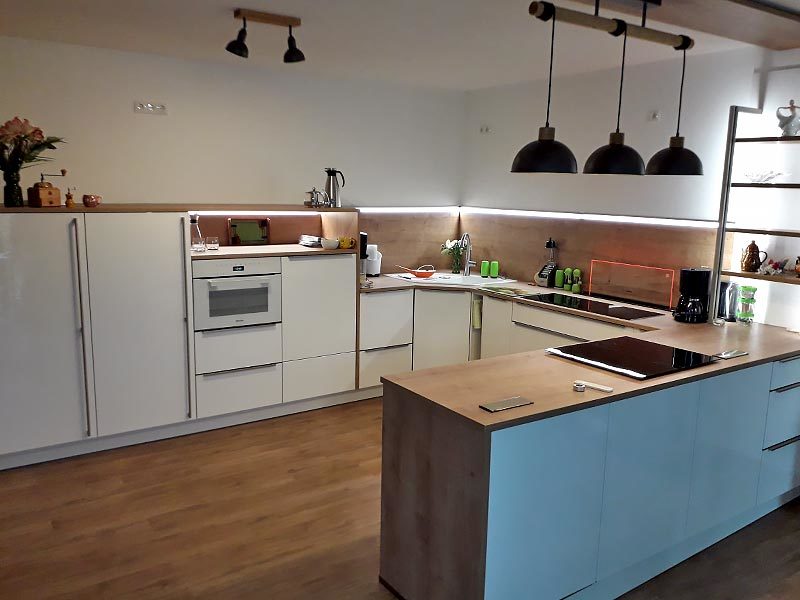 Durch mögliche Umbauten z.B. neue Arbeitsplatten, Schrankänderungen oder neue Sockelprofile, lässt sich oftmals die bisher genutzte Küche in den neuen Räumen weiterverwenden und meistens sogar noch optisch aufwerten.